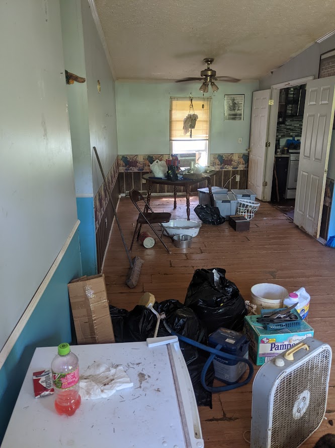 Unfortunately, like many of these “ugly” house situations, the backstory is a sad one. The original owner was a Giant Schnauzer breeder who owned 2.72 acres in Zebulon. She lived in the double-wide manufactured home where she also ran her business. The property also included a detached garage and five fully heated and cooled structures where she was housing the dog kennels. She was breeding anywhere from 20-30 schnauzers at a time until she became sick with cancer. Her parents came down to take care of her and the dog breeding business. During this time, they remodeled the detached garage into a one bedroom apartment for them to live. Shortly after, Ms. Seller sadly lost her battle with cancer. Her parents stayed for some time in order to help clean out the properties, but they had plans to go back to Minnesota permanently. They decided to entertain the idea of selling the property to an investor.