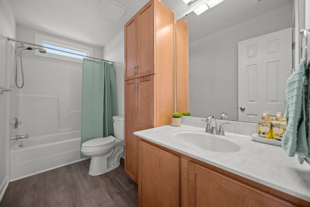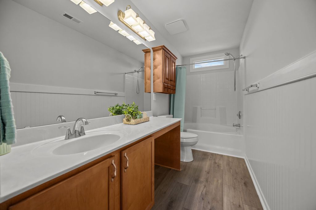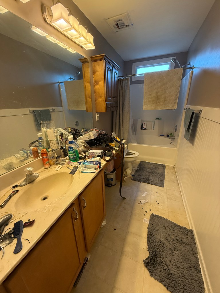 The scope was pretty straight-forward: trash out, new carpet upstairs, fresh paint, replace fixtures where needed, new quartz countertops and stainless steel appliances. We even got a home inspection which didn’t unveil any surprises or problems with the home. The few items we failed to include in our repair budget were replacing the damaged vinyl in both bathrooms (luckily we had some leftover LVP from previous jobs), replacing rotted deck boards and therefore, painting the entire deck.